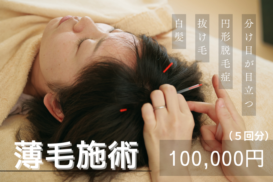 抜け毛、脱毛、髪のハリコシの悩みに対して、全身の鍼灸治療と頭皮ケアのための鍼治療を行います。