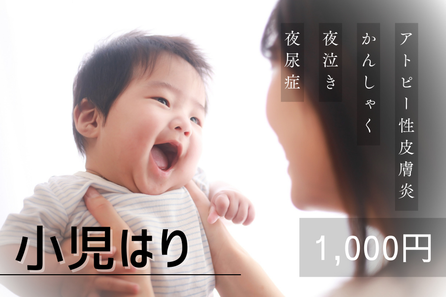 1か月検診が終わった後でしたらいつでも受けていただけます。発育や症状によりますが、だいたい小学生以下の方は小児はりをお受けしています。